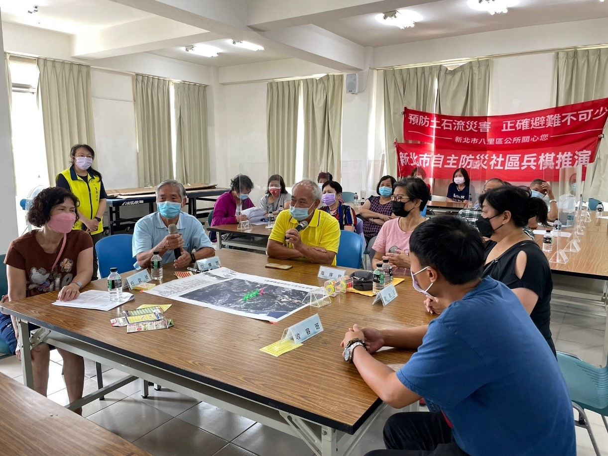 1.自主防災社區兵棋推演:先舉行自主防災說明宣導,向居民說明活動內容,再進行環境踏勘,檢視災害可能發生的地點,而後辦理兵棋推演。